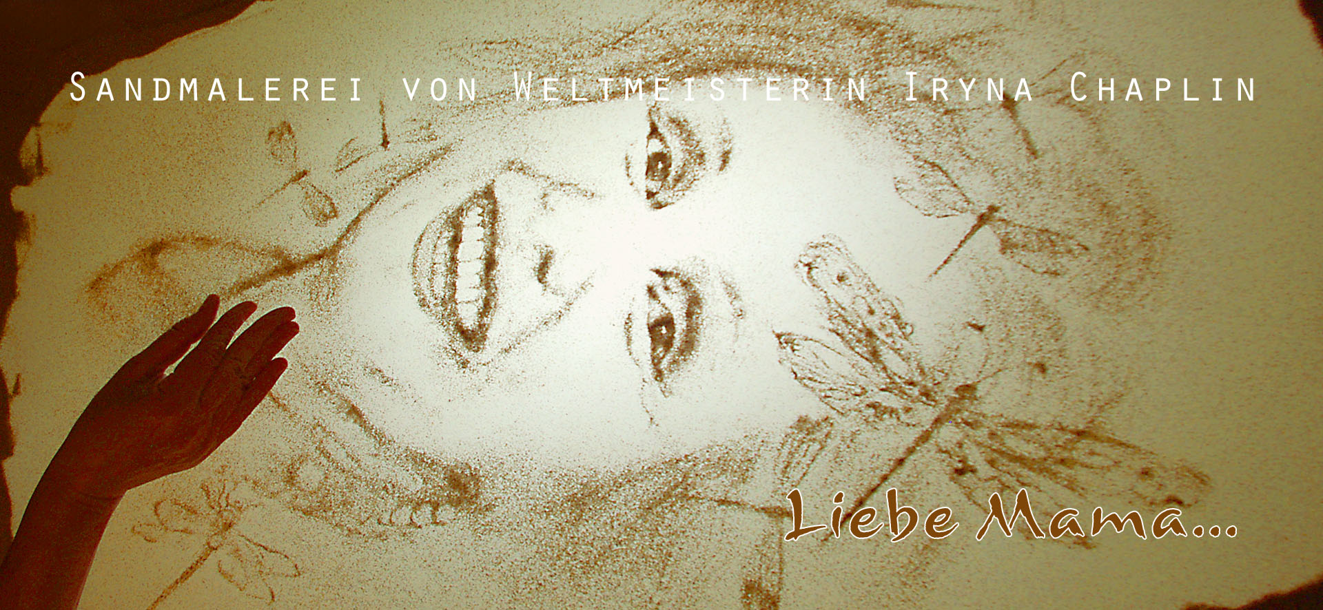 Jeder Auftritt des professionellen Künstlerteams um Iryna Chaplin ist sorgfältig durchdacht und meisterhaft ausgeführt. Die Sandshows sind ebenso einzigartig wie unsere Erfolge. Ein Sandmalerei- Traum ist etwas, womit niemand rechnet. Sehr gerne stellen wir Ihnen individuelle Ideen für Ihr Sandmalerei-Show unverbindlich vor. Das Ende Ihrer verzweifelten Suche ist zu Ende! Suchen Sie nicht länger nach einer professionellen Sandmalerei für Ihre besondere Feier oder eine einmalige Party. Fühlen Sie sich frei unverzüglich Kontakt mit uns aufzunhemen und genießen Sie die Sandmalerei!